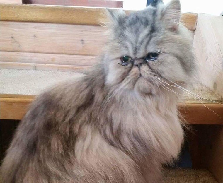 Langhåret. Sølvfarget, med mørkere toner i pelsen. Lysere i pelsen på brystet.