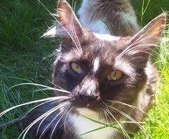 Prince eskaped from home on Sunday late afternoon,he is lost nearby Heidalen,Frolandsvein.He is a big,black cat ,long black hair ,big tail he has..eyes are gold brown ,he has wite strip on his forhead .Prince is a indoor cat ,may be afraid of strange people..We miss him so much,let us know if you only see him..telf. 465 86 389 thank you for any help Mariola..It is typicla Norwegian forest cat