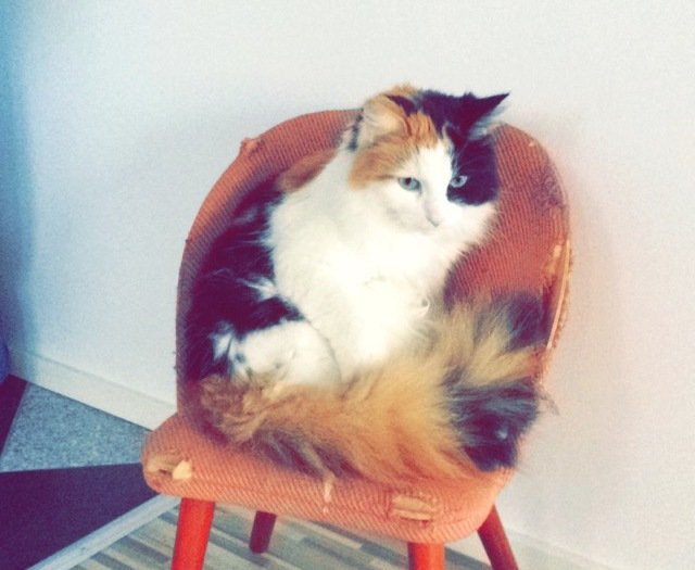 Veldig kosete og kjelen katt. Kan være litt skeptisk til nye mennesker.