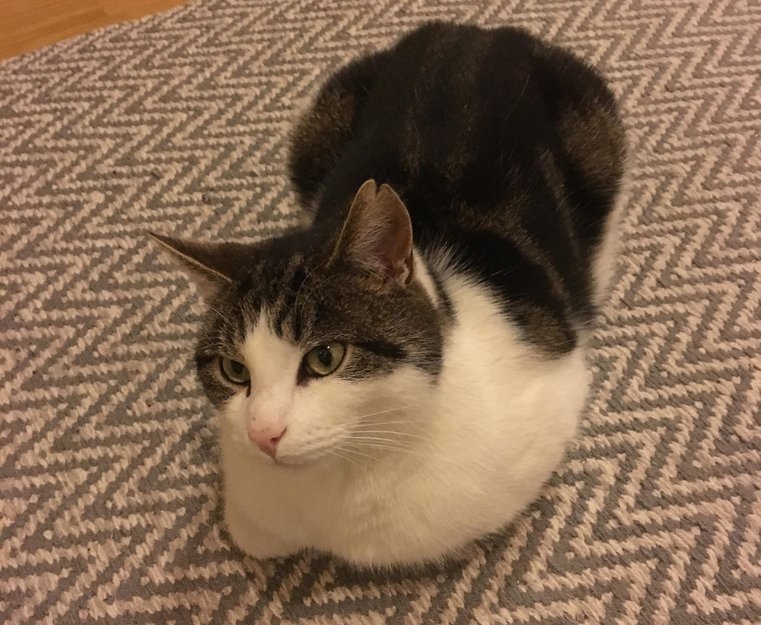 Ozzy er delvis inne og utekatt, har katteluke og går inn og ut som han vil. Han bruker å være mye ute, men han kommer alltid inn på morgenen for mat.