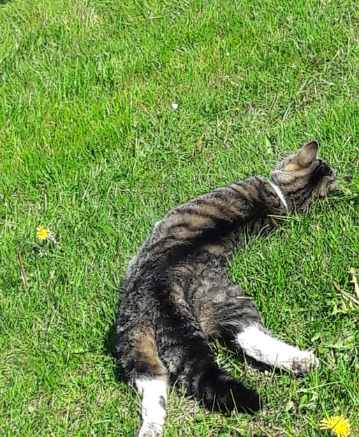 Død spraglet katt funnet død på baksiden av Oscar Mathisens gate. Ved bussholdeplass. Ligger på plenen der. Har halsbånd.
