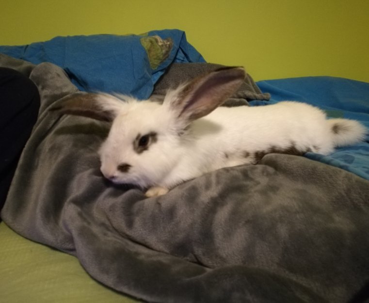 Hvit med brune flekk hunnkanin ble funnet i Sandnes