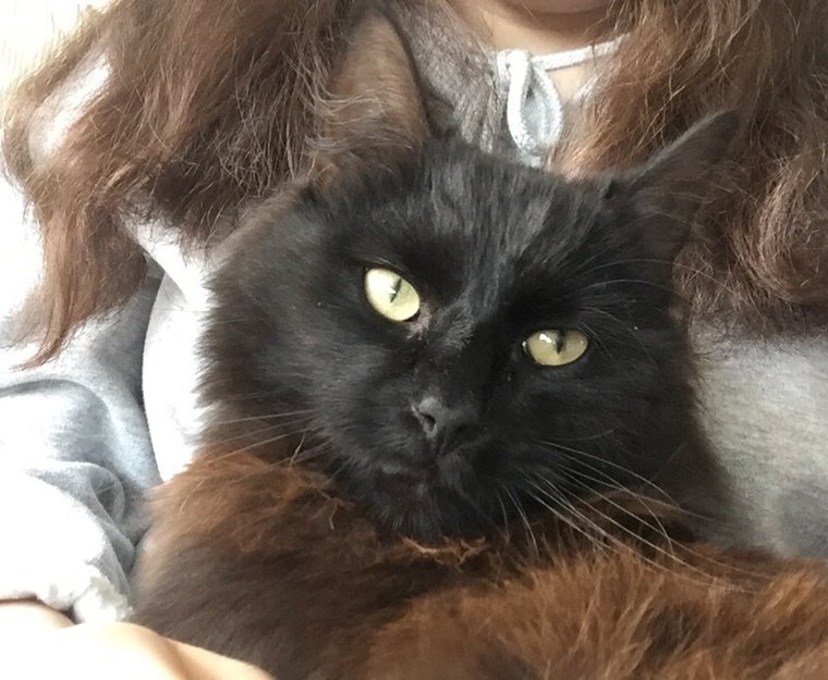 Han er en semilanghåret, brun og svart utekatt, har en tynn, hvit flekk på brystet som kan være litt gjemt bak resten av pelsen. Grå på magen, og hvis man ser nøye etter er han litt grå på potene ovenfor klørne. Han har også knekt hale, og ikke halsbånd. Utrolig kosete, og kan følge etter deg hvis du begynner å kose/puse på han. Han er snart ett år og ikke så veldig tynn, men ikke feit heller. Send meg sms hvis du har funnet han, da jeg ikke svarer på ukjente nr.