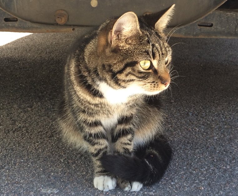 Så denne lille, tynne katten utenfor Waldemar Thranes gate 57. Den mjauet og var kontaktsøkende, men også tydelig nervøs. Hadde ikke halsbånd. Kjennetegn: hvit ytterst på alle potene, som små "sokker". Jeg bor dessverre ikke i området og kunne derfor ikke ta vare på katten.