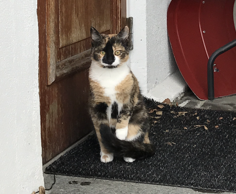 Etter å ha hengt ut utallige lapper og nesten gitt opp håpet, ringte en dame til meg på selveste 17.mai og sa hun trodde hun hadde sett katten min løpe under verandaen til nabohuset hennes. Dette er en gate som ligger på andre siden av en godt trafikkert vei fra der vi bor. Jeg løp av gårde og fant Zenja mjauende. Eier av huset sier han har sett henne før og at han tror hun har bodd under presenningen de hadde over hagemøblene. Zenja har blitt veldig tynn og var kjempe sulten og kosete, men ellers i god form.