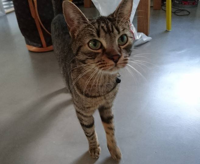 Vår ca 1 år gamle jentekatt har vært på besøk hos noen venner på Karlsmarka på Søreide/Sandsli mens vi var bortreist, da hun etter en uke på besøk klarte å komme seg ut og løpe av gårde. Hun er en beskjeden og litt forsiktig pusekatt som godt kan finne på å gjemme seg eller snike seg inn i et sted hvor det er trygt og varmt.