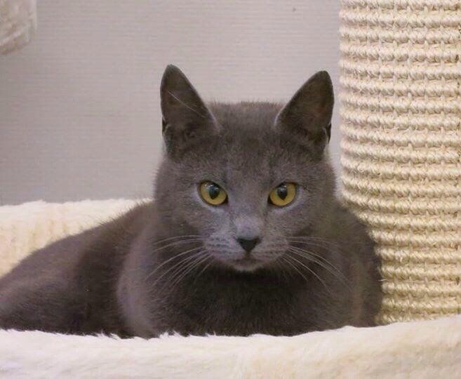Cleo er en sky og engstelig grå hunnkatt av liten størrelse. Hun er skeptisk til mennesker, og vanskelig for fremmede å få tak i. Hun liker ikke å bli løftet eller bært, men kan komme til deg for kos om det er stille rundt deg. Hun har kort pels og veier ca. 3 kg.