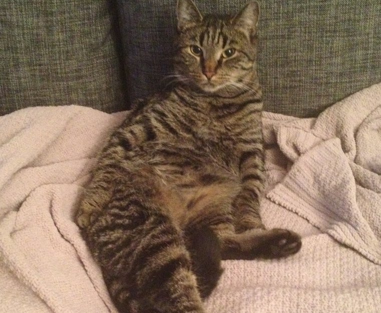 Hun har en tigerstripet pels. Hovedsakelig grått og svart, med noe brunt. Korthåret.