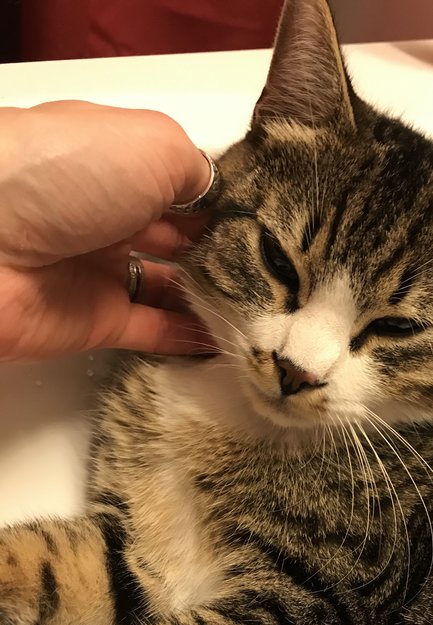 Naboer kontaktet oss om en katt som lette etter mat i søppel osv. Det var vår Cashew!