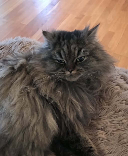 Storm er halvt Norsk Skogskatt og Perser. Han er langhåret og litt flat i ansiktet. Han er veldig snill og veldig glad i mennesker, han koser mer enn gjerne med fremmede. Han skal i utgangspunktet ha et halsbånd som er rødt hvor det er skrevet navn og telefonnr inni.