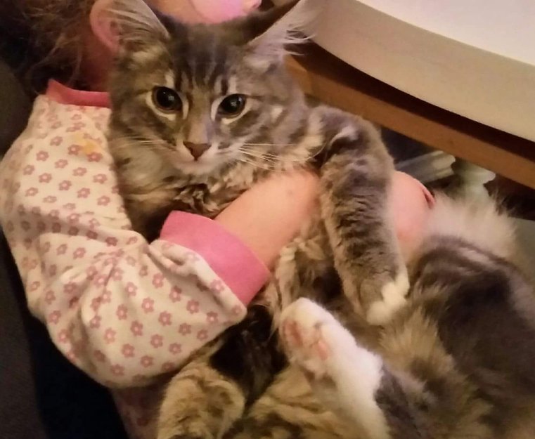 Fikk telefon fra ett hyggelig par ca 1 km fra hjemmet vårt. Katten hadde krøpet inn vinduet i kjellerleiligheten deres og lagt seg under senga.