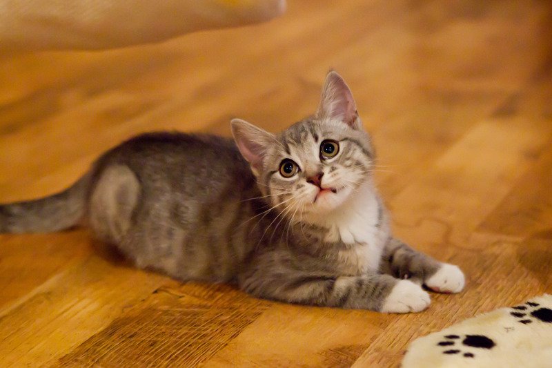 Grå, med hvite poter hunnkatt ble funnet i Kongsberg