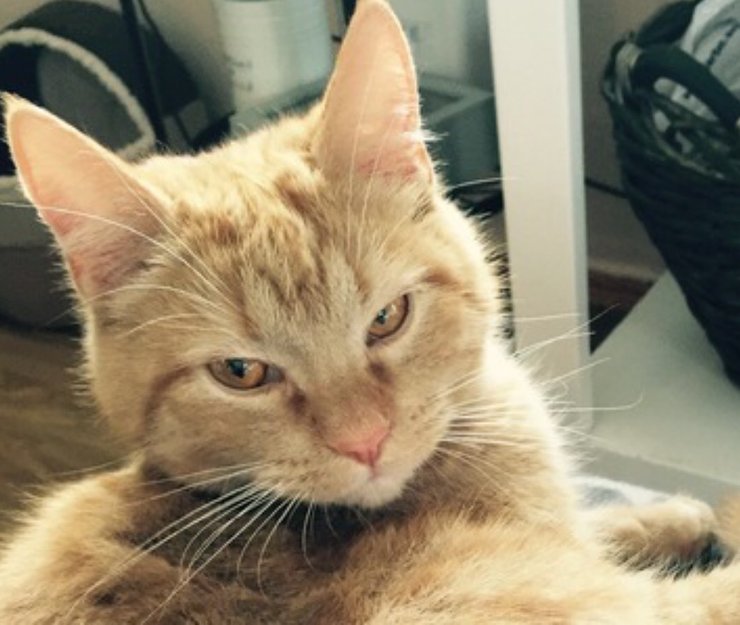 Sammy er en ganske stor oransje hannkatt. Kastrert. Lyder navnet sitt, men er sky overfor fremmede.