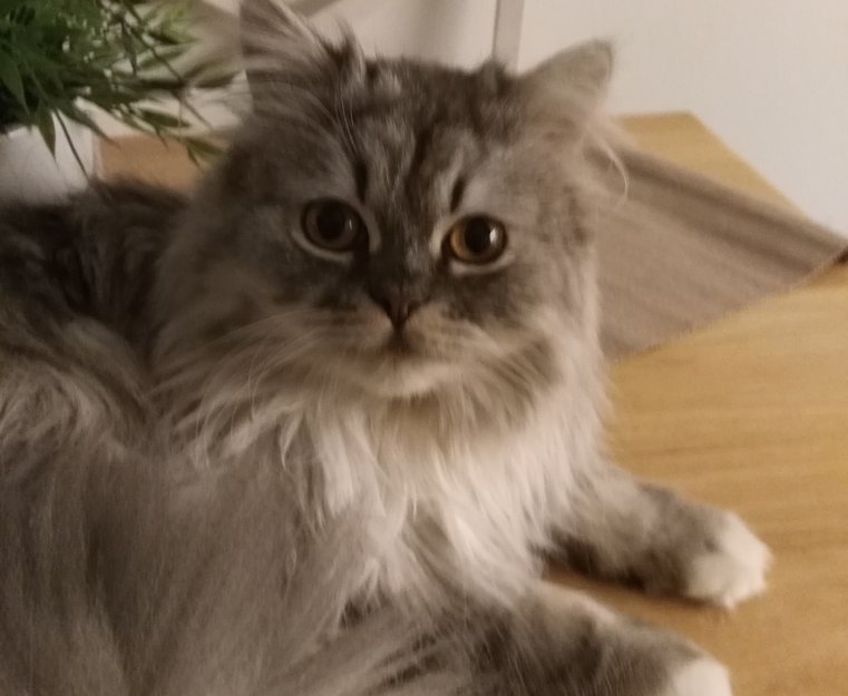 Georg har kommet seg ut av huset i Stallmannsvingen natt til i går 22/5. Han er 1 år gammel. Blandet Perser/skogkatt. Silver Shaded. Han har ikke vært ute før.