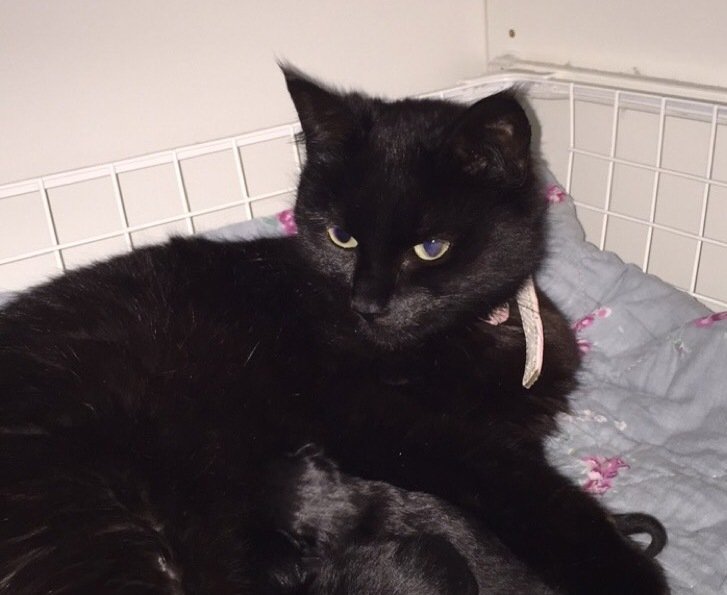 Hunnkatt ca 3år savnet fra Fjeldstad i Fredrikstad . Sort/brunlig pels med noen hvite hår på brystet. Lyse øyne. Ikke så veldig stor