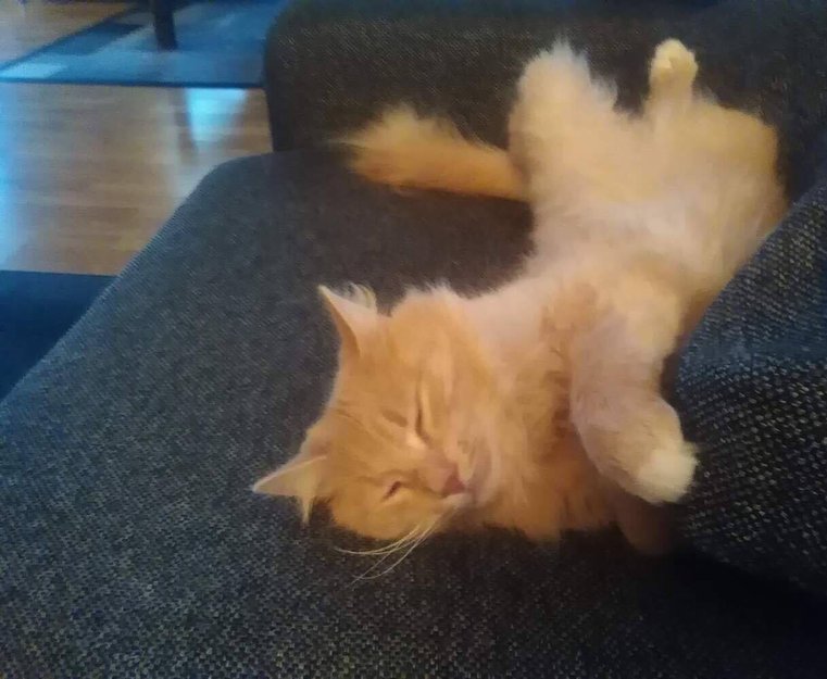Han er en rødhåret katt og er utrolig kosete, han er også en skipskatt, og har altså en ekstra "finger" på begge forlabbene. Han har også en chip i det ene øret.