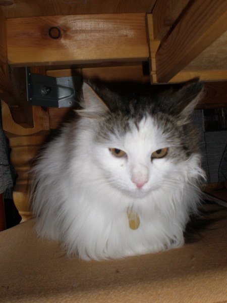 Er helt hvit men er svart\grå i ansikte og på halen.