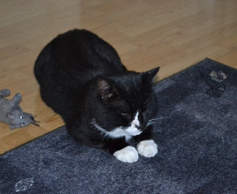Sort og hvit korthåret hannkatt fortsatt savnet. Den er ikke chippet eller kastrert. Har vært borte fra hjemmet over ett år. Merker : halve del av nesen er sort og andre del er hvit. Hvite sokker på frambena. Hvite partier på magen..