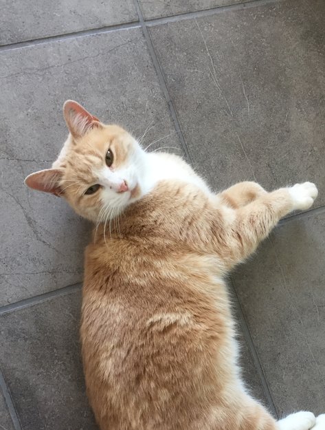 Rubine er øremerket, og det grønne merket vises godt i hennes hvite øre. Hvite sokker og rosa nese. Oransj på haka.