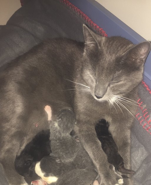 Fredag morgen hoppet en fremmed katt inn i en leilighet som skulle fraflyttes. Der fødte hun 6 små.