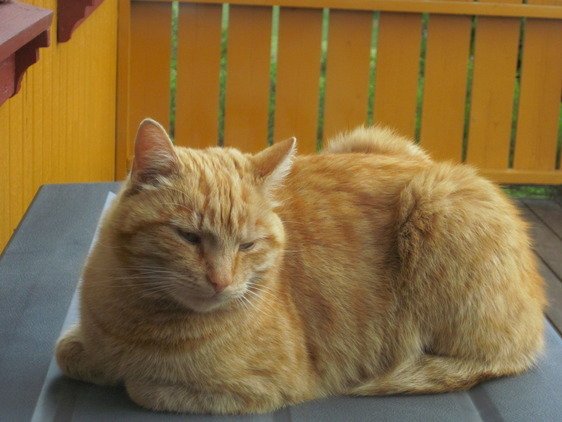 Umerket og mest sannsynlig kastrert hannkatt. Kjennetegn ellers er at den har kort hale og er beige/litt rødlig.