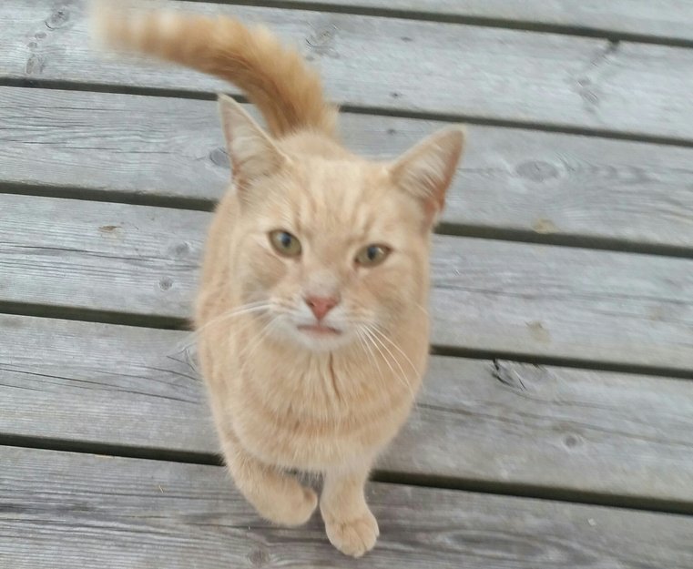 Kjelen rød hannkatt har holdt til rundt huset vårt.