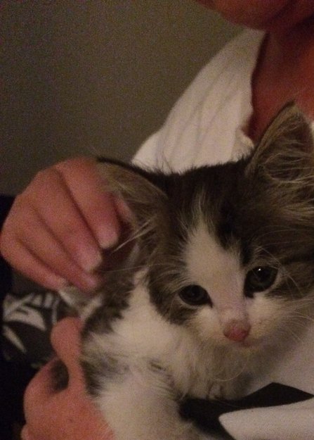 Naboen har mest sannsynlig fått med seg en kattunge fra Bjorbekk kirkegård under bilen. Hvor den har kommet fra før det er umulig å si om den har gjemt seg i en annen bil før det. Den er i god form, spiser våtmat og tørrmat og roper veldig etter kattemor.