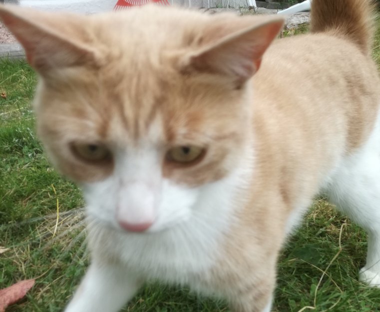 Katten er ung, dukket bare opp her. Skvetten, men veldig kosete.