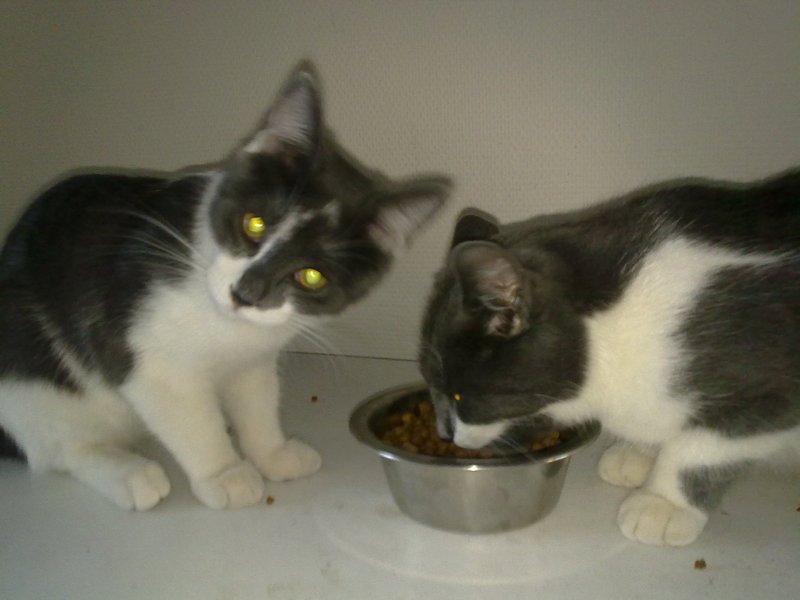 Hvit mage, for det meste grå på ryggen og hvit og grå i ansiktet