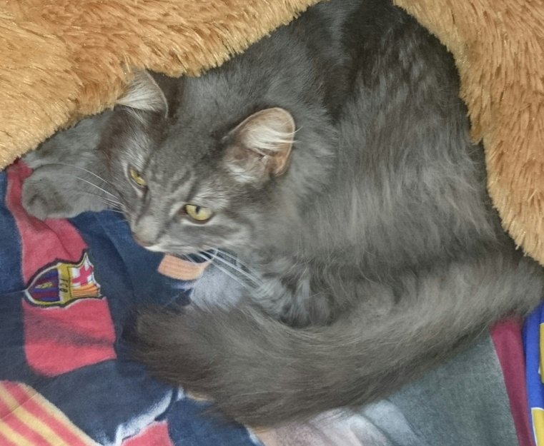 Hermine kom tilbake av seg selv etter fem uker . Hun er i fin form og veldig selskapssyk og kosete:)