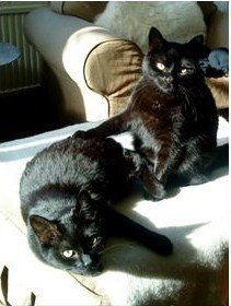 Ensfarget Sort, litt lubben. Kosete og glad i mat.