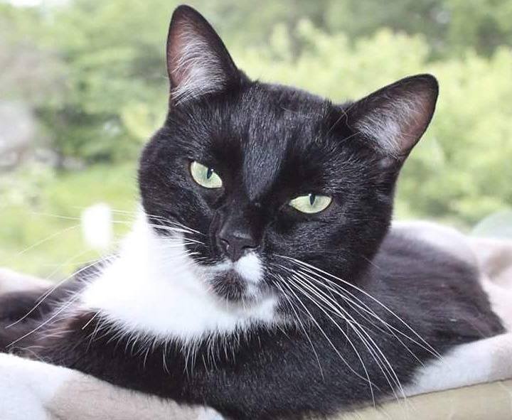 Han er ein svart og kvit kastrert hannkatt med chip. Kvit heilt nederst på alle 4 føttene.Han blir veldig usikker når han ser mennesker, står og stirrer så springer han. Han er ein ganske stor pus med pipende stemme når han prater, så vanskelig å høre visst han er innestengt. Kan eg da få hjelp til å sjekke garasjer og boder.