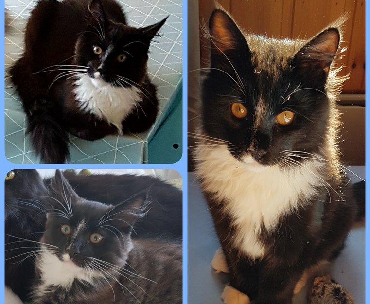 Han er veldig sosial, tillitsfull, elsker barn og trekkes mot folk. Siden vi har vært på ferie, med kun noen til å gi dem mat, har vi en teori om at han har gått for å finne noen å leke med. Han er 6mnd gammel, men stor for alderen da han er halvt Maine Coon katt. Elsker å klatre i trær så han kan ha blitt sittende fast i ett tre..
