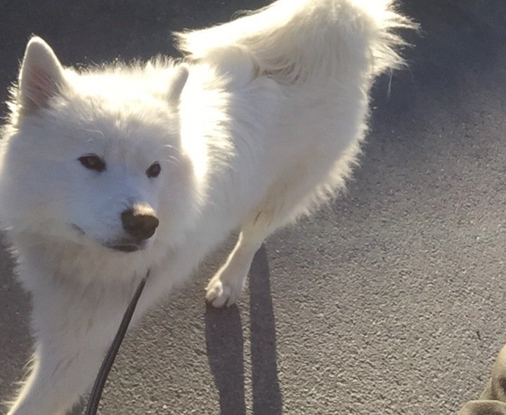 Hunden fikk ferten av noe og for i full fart i det eier skulle overlevere flexibåndhåndtaket til noen andre. Dro retning torsbustaden med flexibåndet på slep.