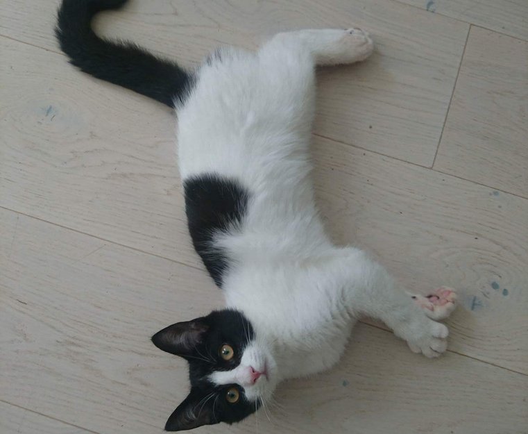En nabo litt lengre bort i gata hadde tatt den inn fordi den virket bortkommen og var så liten. Hun kontaktet meg etter å ha funnet annonsen her på Dyrebar. Tusen takk til Dyrebar og tusen takk til Christina. Nils ligger nå og koser seg i sofaen.