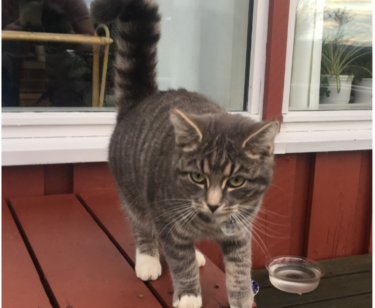 Katten har holdt seg rundt huset vårt siden søndag 16. juli. Var veldig sulten og kjælen.
