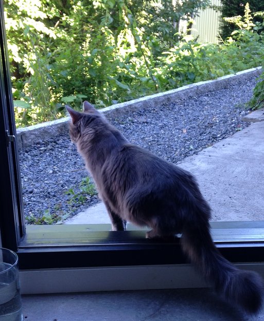 Grå-langhåret hunnkatt med stor hale og grønne øyne er savnet i 2 dager. Hun er lite kjent i området da vi flyttet hit nylig. Hun er veldig kosete og snill men kan fremstå som redd for ukjente da dette stedet er nytt for henne. Hun liker å sove hjemme om natten.