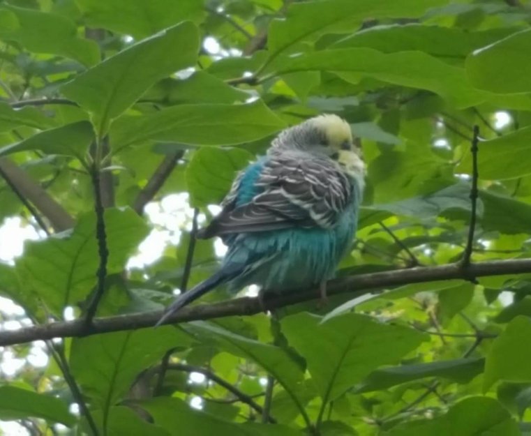 Vi har en blå undulat med gult hode i hagen. Har ikke klart å fange den enda, men den ser ut til å holde seg i det samme området.