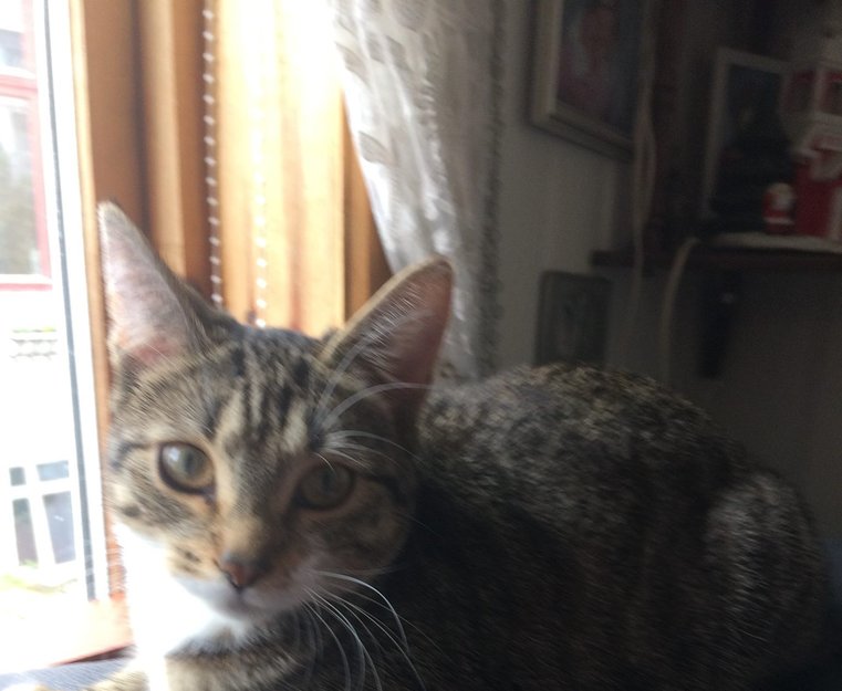 Hadde vinduet åpen og lille My har følt seg tøff og hoppet eller falt ut vinduet , hun er innekatter og er litt skeptisk og skvetten til nye personer. Hun er ikke øremerket og sterilisert enda siden hun er var kun innekatter enda, planen var å gjøre det til høsten