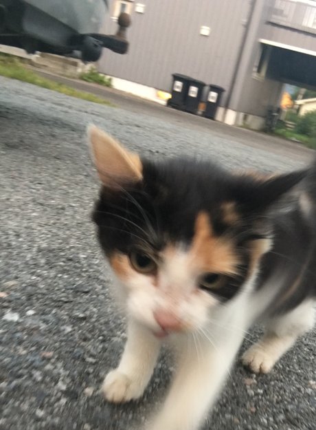 Katten, rundt 4mndr, sto utenfor der jeg bor og mjauet hysterisk. Gikk ut for å se om den var skadet. Virket ikke skadet, men redd, sulten og tørst. Den spiste på småstein og mark.