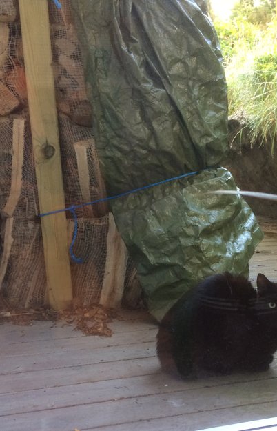 Den dukket opp utenfor huset vårt, er sulten og løper inn for å ta for seg av kattematen til våre katter. Den er sky og vi har ikke kunnet se om den er merket.