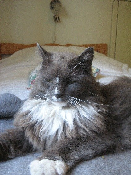 Grå og hvit hannkatt ble funnet i Asker