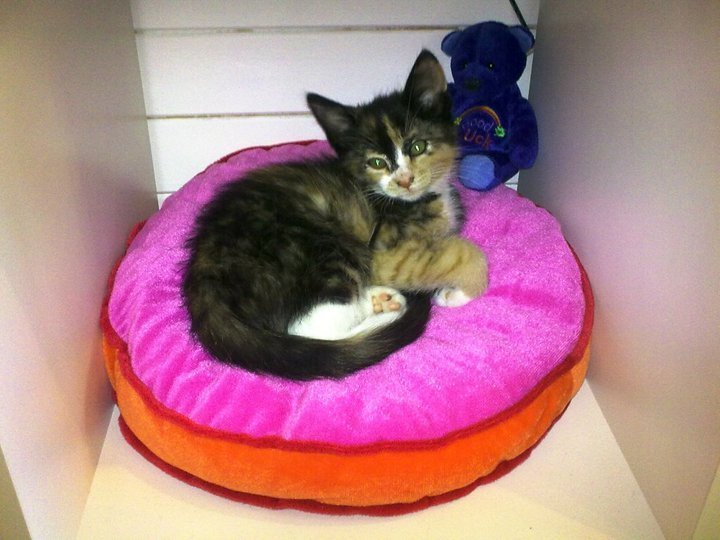 Hun er en snill, leken pusekatt som er glad i mennesker, men har gjerne ikke tid til å kose. Hun har hvite bakben og er hvit på magen. Pelsen oppå er svart og brun med litt tigerstriper i. Det høyre forbeinet hennes er også tigerstripet.