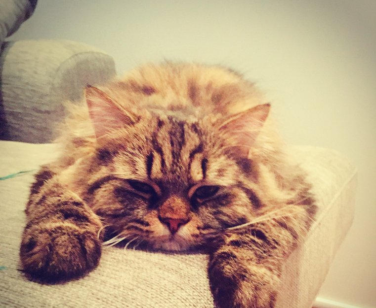 Scott kan være litt skvetten av nye mennesker, men sett deg på huk og pus på han med litt snop så kan det være han tøffer seg opp. Han går veldig vaggete, og mjauer veldig høyt. Og mye. Dusør 1000,-.