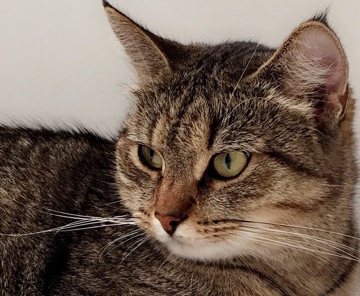 Kira er en vanlig norsk huskatt som veier rundt 5-6 kg. Hun er veldig kosete og imøtekommende. Mjauer en del etter oppmerksomhet. Hun har fargene svart, brun og hvit.