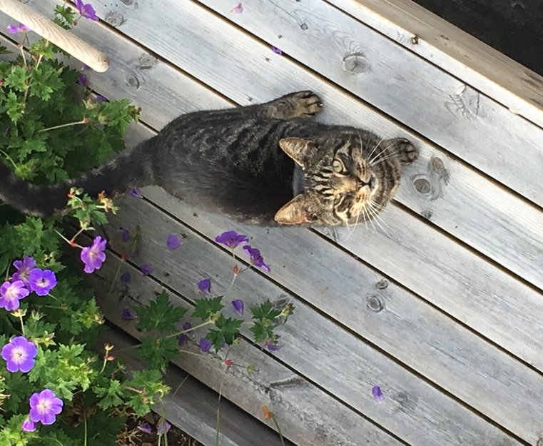 Sosial og sulten katt henger på eiendommen og kommer inn og stjeler mat fra vår katt så fort det er en åpen dør/vindu.