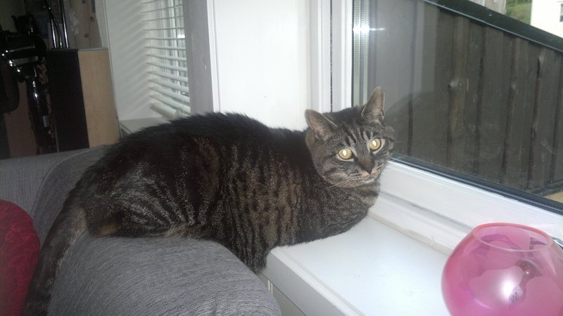 Katten kom hjem etter 2 uker. Vel bevart, men litt tynn. Er litt nervøs nå, så var kanskje litt hardt å være ute på eventyr. Men godt for matmor at han er hjemme igjen;)