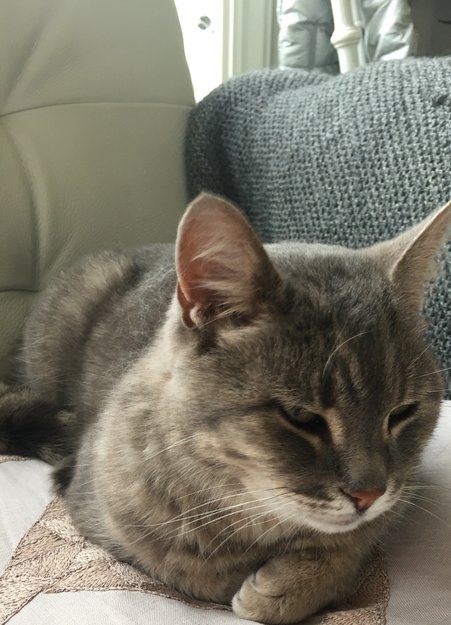 Pernille har ikke vært hjemme siden søndag kveld. Hun er født i 2006, så 11 år. Vi har kun bodd på Våland en måned. Før det bodde vi ved Badedammen. Hun er litt skvetten av seg, men veldig kosen. Hun er lys grå tiger.