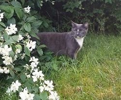 Luca er ca 2 år. Han er grå med hvitt bryst og under magen, samt poter (liten hvit stripe i ansiktet). Han er litt sky for fremmede mennesker. Snakker mye hvis han føler seg trygg.