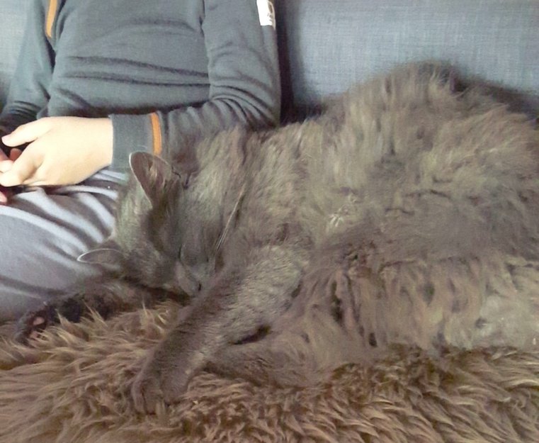 Katten har vandret rundt på hyttefeltet på Rudstigen i Hurdal i hele sommet. Den er veldig fortrolig med både barn og voksne. Vi tar den med til dyrlege over helgen for å sjekke om den er chippet.